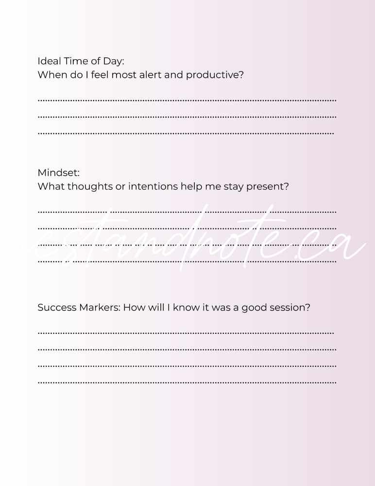 We also offer a focus ritual template, designed to help you in creating rituals that foster greater concentration. The deep work planner aids in scheduling and managing intense focus sessions, making sure that you dive deep into your work without interruptions.