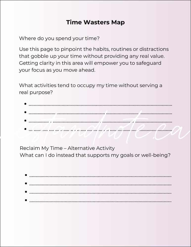 With an energy tracker, ensure that your vitality aligns with your most important tasks. With a handy time waster’s map, isolate the habits and routines that hinder your progress.